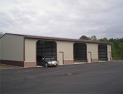 Commercial grade steel sided and masonry buildings with concrete floor and large overhead doors.